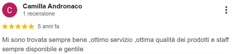 “Mi sono trovata sempre bene, ottimo servizio, ottima qualità dei prodotti e staff sempre disponibile e gentile”
