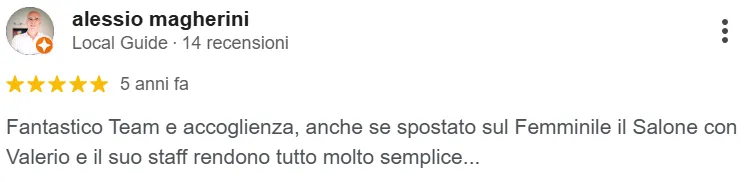 “Fantastico Team e accoglienza… il Salone con Valerio e il suo staff rendono tutto molto semplice”